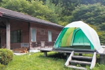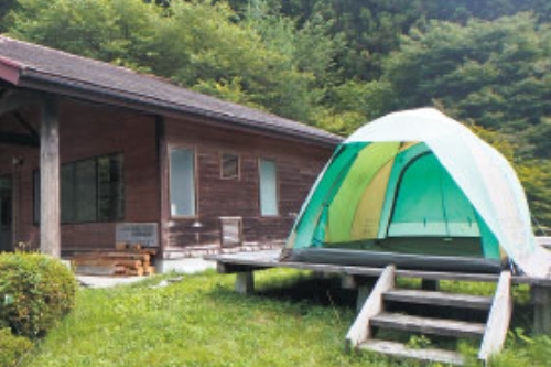 テントデッキ、管理棟、炊事施設完備、テントデッキ/1張1日まで 200円、テント(5人用)/1張1日まで300円。